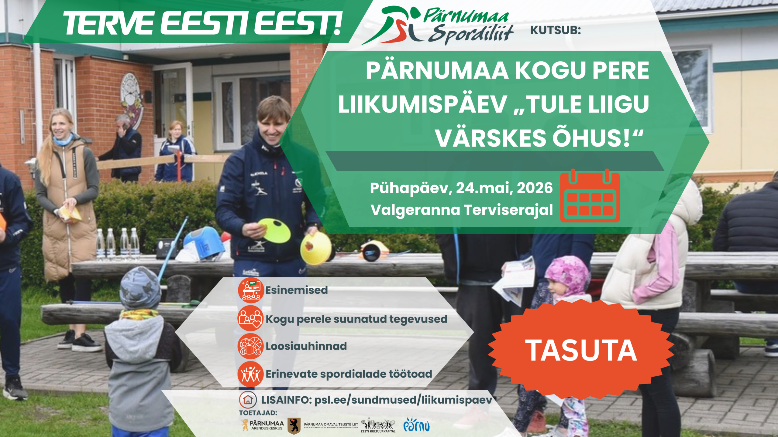 4. dets. 2025 Lisas: Pärnumaa Spordiliit Parimate tunnustamine Kommentaarid puuduvadOn aeg esile tõsta need, kes on sel aastal silma paistnud erilise pühendumuse, tugevate tulemuste või mõjusa panusega meie maakonna spordiellu Esitamise tähtaeg: 11. detsember, 2025 Esitamisvorm: https://forms.gle/jKeSYk6wnGgPGPM99 Aita meil märgata ja väärtustada Pärnumaa spordi tublimaid tegijaid!